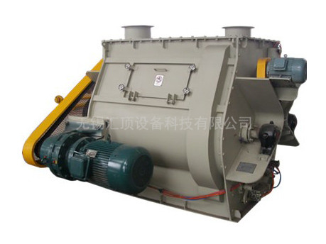 无重力混合机装载着两根同时异向向外旋转的平行桨叶轴,每根轴上搭载十字桨叶,在驱动装置的同步作用下,两根的十字桨叶轴的运行轨迹成相交关系,且错位啮合。驱动装置驱使桨叶轴快速旋转,旋转的桨叶产生离心力,将物料有效抛洒至筒内上空部分,达到抛物线的高点后下落(抛物线的高点也称为瞬间无重力状态),物料再受桨叶的驱赶,在筒体内往复循环混合,并受双轴的啮合空间混合、剪切、分离,致使物料快速混合均匀。