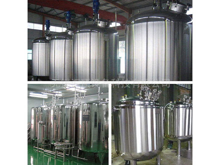 不锈钢储罐设备分缸体、缸盖、进料口、出料口,由不锈耐酸钢304或316制成,罐体采用立式或卧式单层或双层结构,并根据用户要求充填保温材料,按GMP技术条件进行,缸体内抛光,外部采用镜面板或磨砂板保温。顶部开设进水口、回流口、消毒口、清洗口、人孔并安装空气呼吸器,且可与管道连接,便于连续进各种配料,缸底为锥度,出料口便于放料。